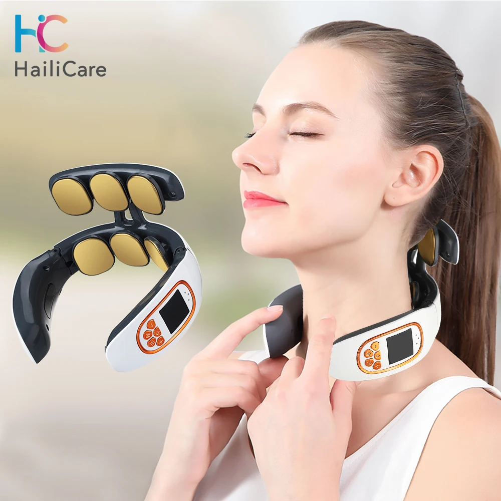 Best 6 Patches Neck Massager 4 Modes Micro-current Smart EMS Pulse Heating Neck Massager Cervical Traction Therapy Health Care Tool and You will save 62% or US $14.72 today